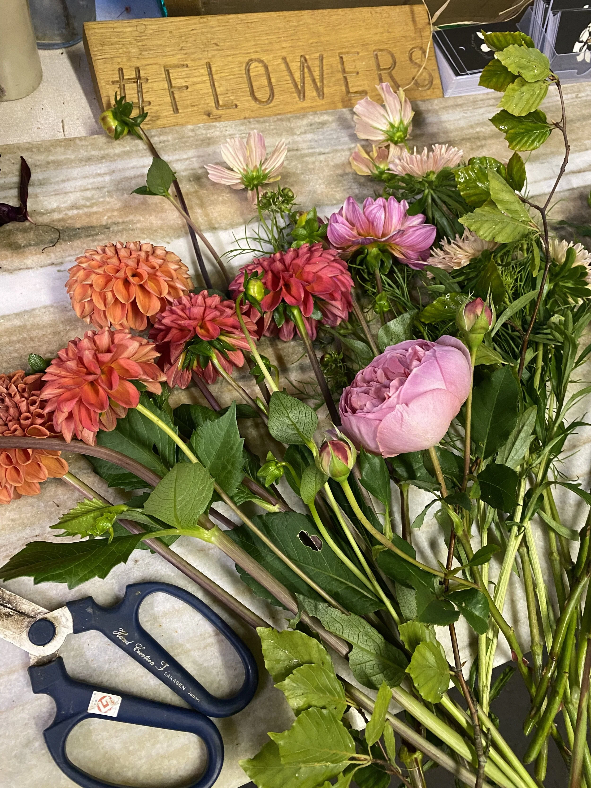 Learn first hand techniques and sustainable methods, choose your own seasonal flowers and foliage from the flower farmers field in Sussex, retreating to the workshop to create your very own hand tied bouquets and arrangements.